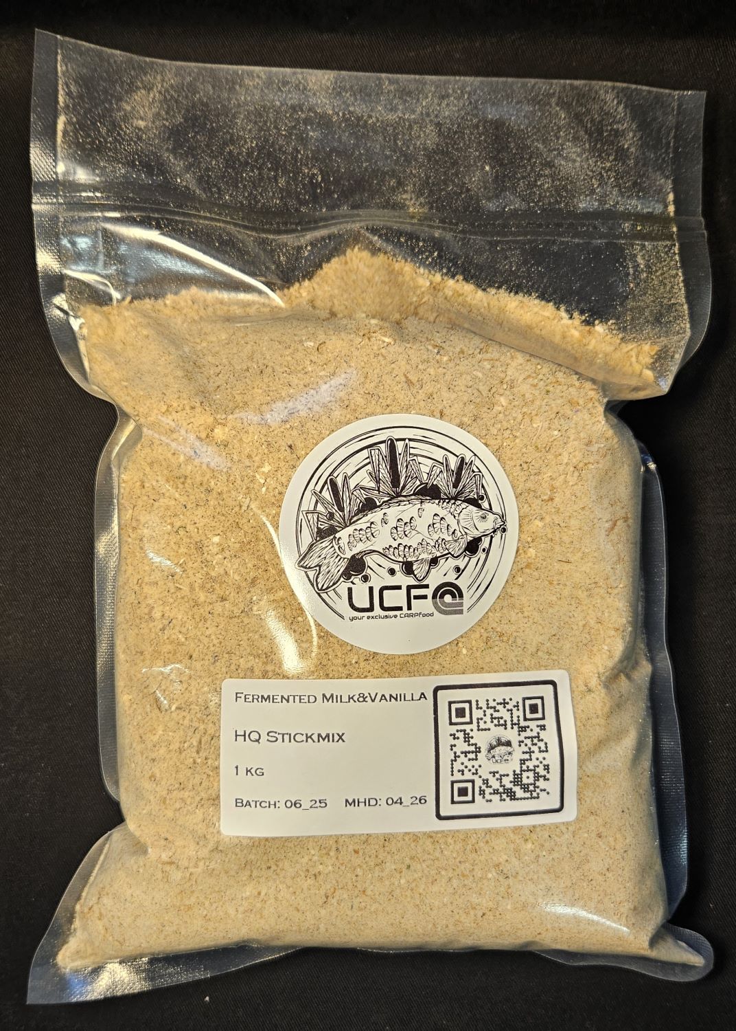 Der passende Stickmix zum Fermented Milk&Vanilla-Boilie. Auch dieser Stickmix verfolgt weitestgehend den „Basemix-Ansatz“. Das bedeutet, dass sich die allermeisten Zutaten des Boilies auch im Stickmix wiederfinden. Alle Stickmixe aus dem Hause UCF bauen darüber hinaus auf einer Grundmischung aus stets frisch vermahlenem Bio-Dinkelschrot, Weizenkeimmehl und Haferflocken auf. Zusätzliche wasserlösliche, wolkenbildende Zutaten wie auch Zutaten, die den „Upside-down-Effekt“ verstärken komplettieren die Stickmixe. Z.T. finden auch, je nach Stickmix-Sorte „Booster-Zutaten“ wie Premium Micropellets, Gammarus oder Kokosflocken ihren Einsatz in den Stickmixen.